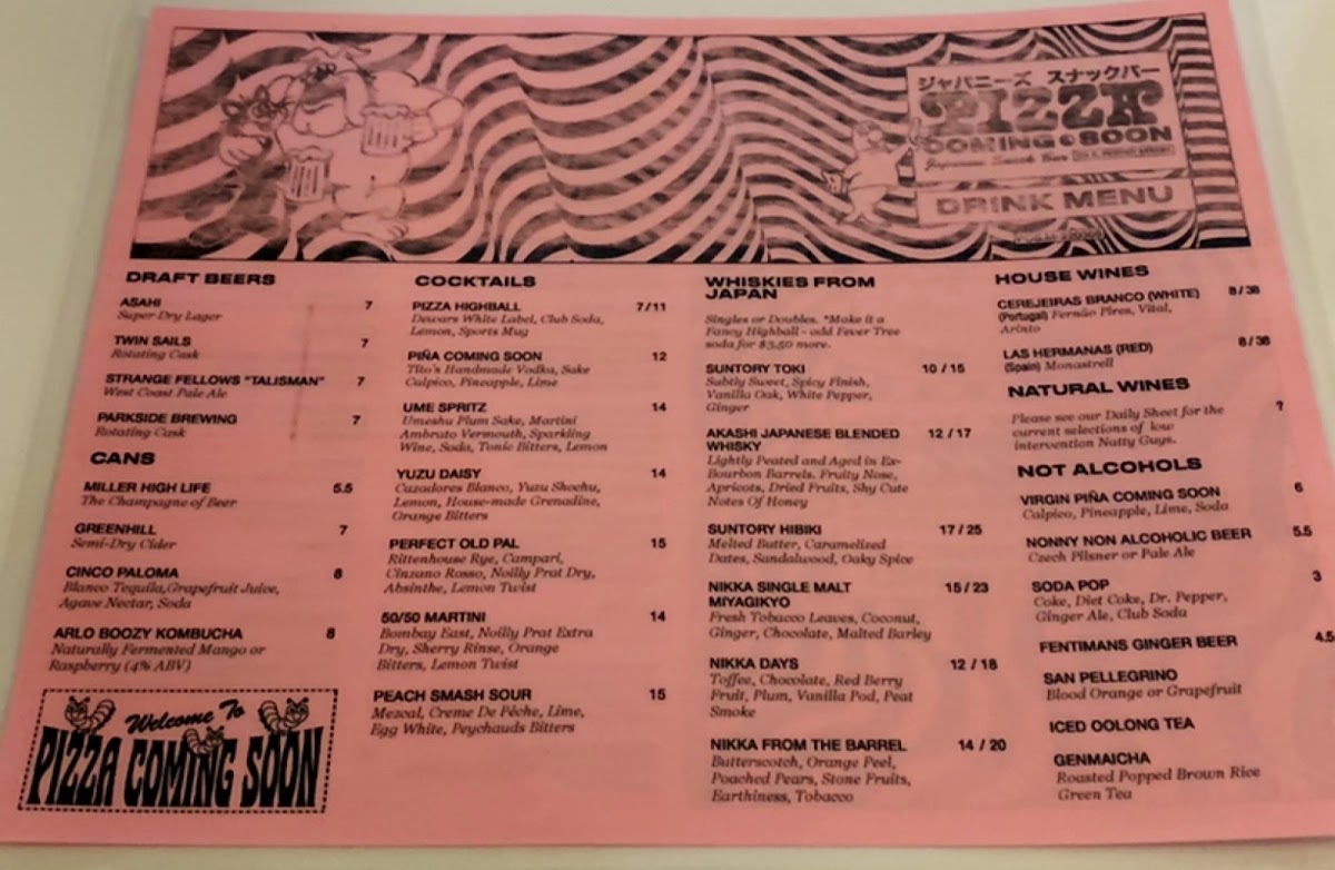 For those seeking shareable bites, the big mac bao and miso cucumber are standout choices. Enjoy refreshing house-made drinks like the life-changing “Pina Coming Soon,” or pick from a selection of classic sodas. The ambiance is equally appealing, featuring a mix of retro and modern decor that creates the perfect backdrop for a fun night out. With friendly service and dynamic daily specials, Pizza Coming Soon promises a memorable dining experience.